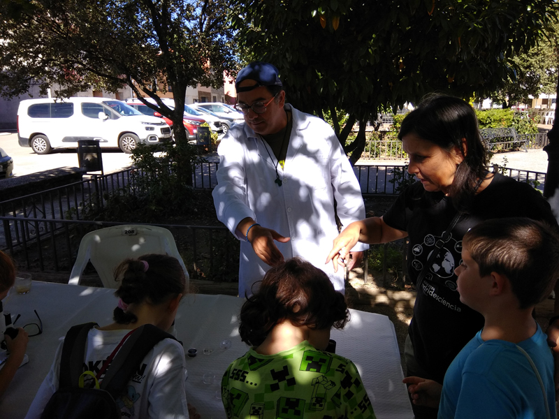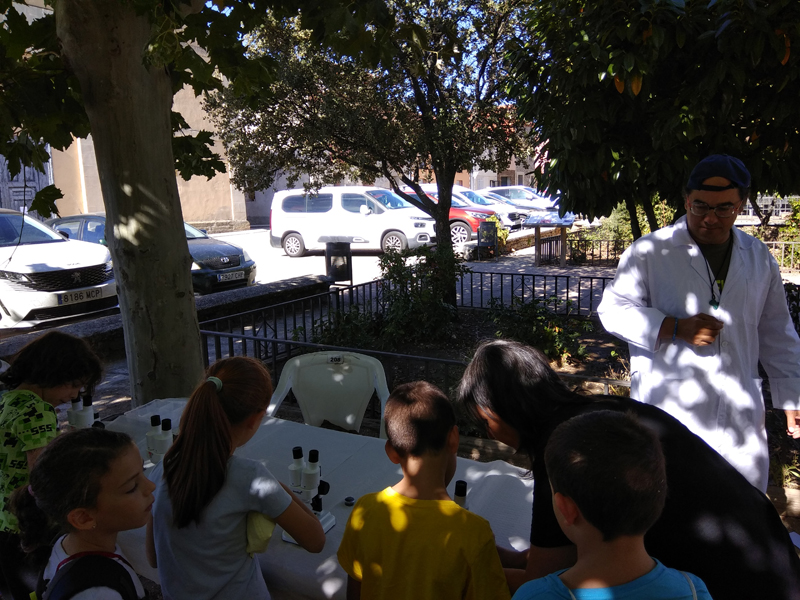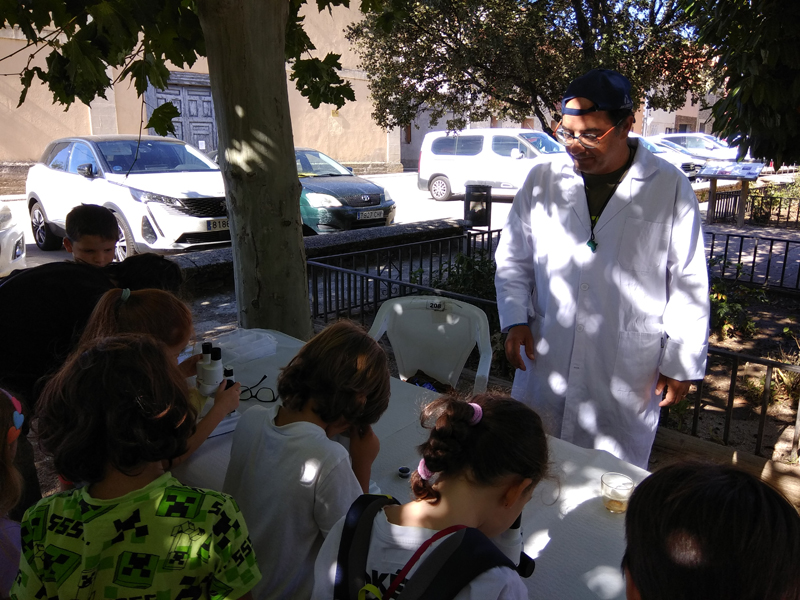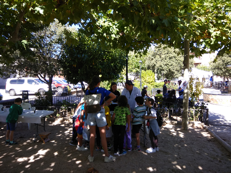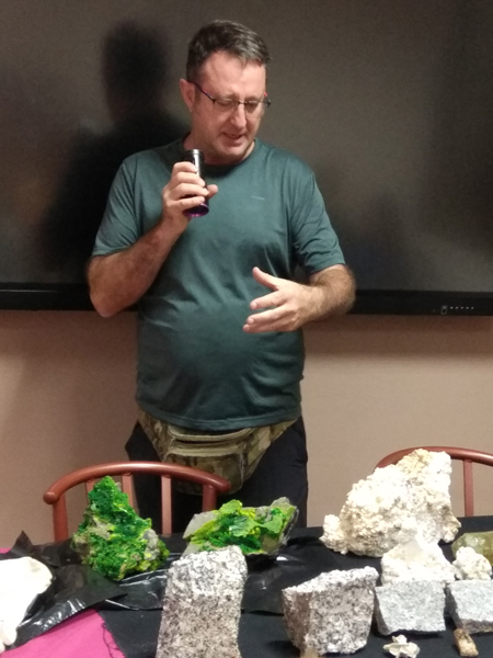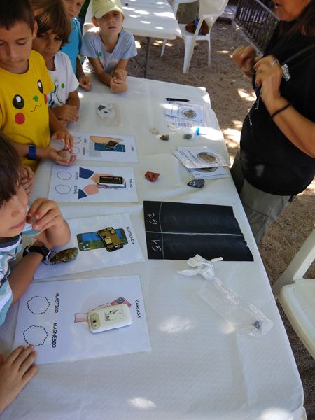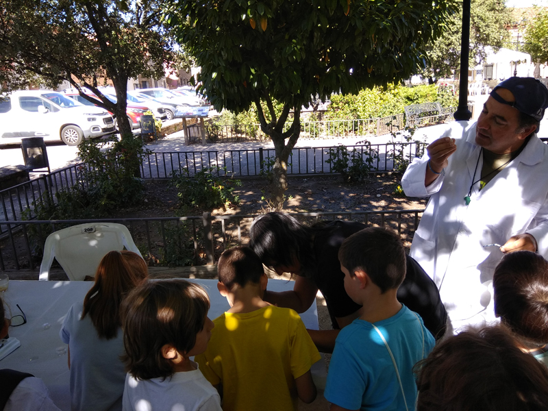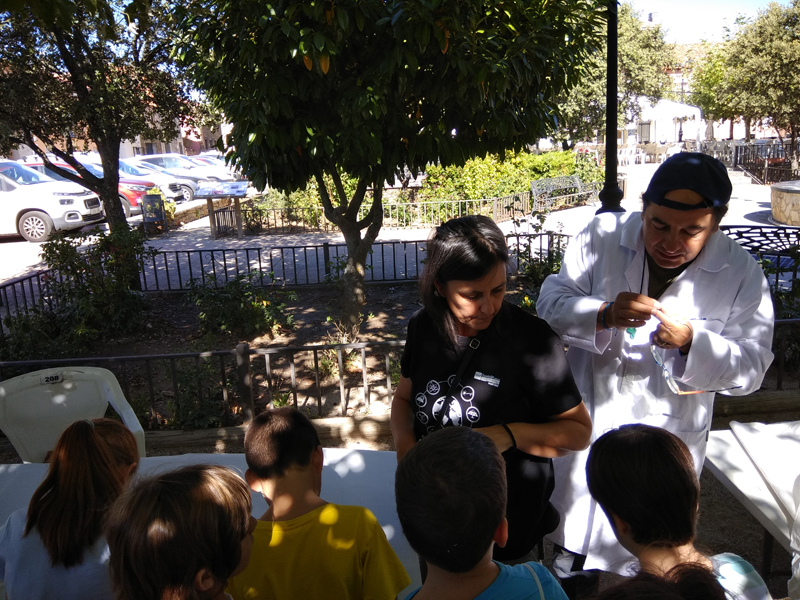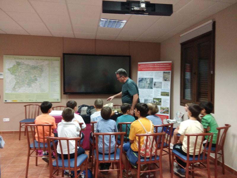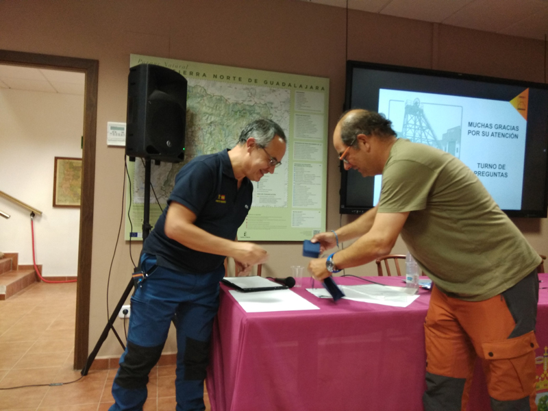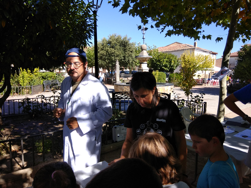 La participación del Grupo Mineralogista en las actividades mineras de la jornada como todos los años. El Presidente del Grupo Mineralogista de Madrid, D. Luis Jordá, Doña Ana López Gemóloga, Doña Almudena Carrero y Don Rafael Jordá, geólogos, realizaron varios talleres mineralógicos, de bateo, actividades y gymkana. D. Antonino Bueno, Mineralogista, preparó una actividad sobre fluorescencia y fosforescencia mineral. Todo ello con gran afluencia de público y participación, disfrutando de las visitas guiadas, exposiciones preparadas y comida en la Plaza. Finalizada la charla de la tarde, “El binomio Mercurio-Plata, Almadén-Hiendelaencia”por D. Luis Mansilla, grabada por D. Gonzalo García para Frente Minero y la presentación de los avances en los trabajos de musealización de la mina Santa Catalina, el País de la Plata, por D. Javier Roldán.